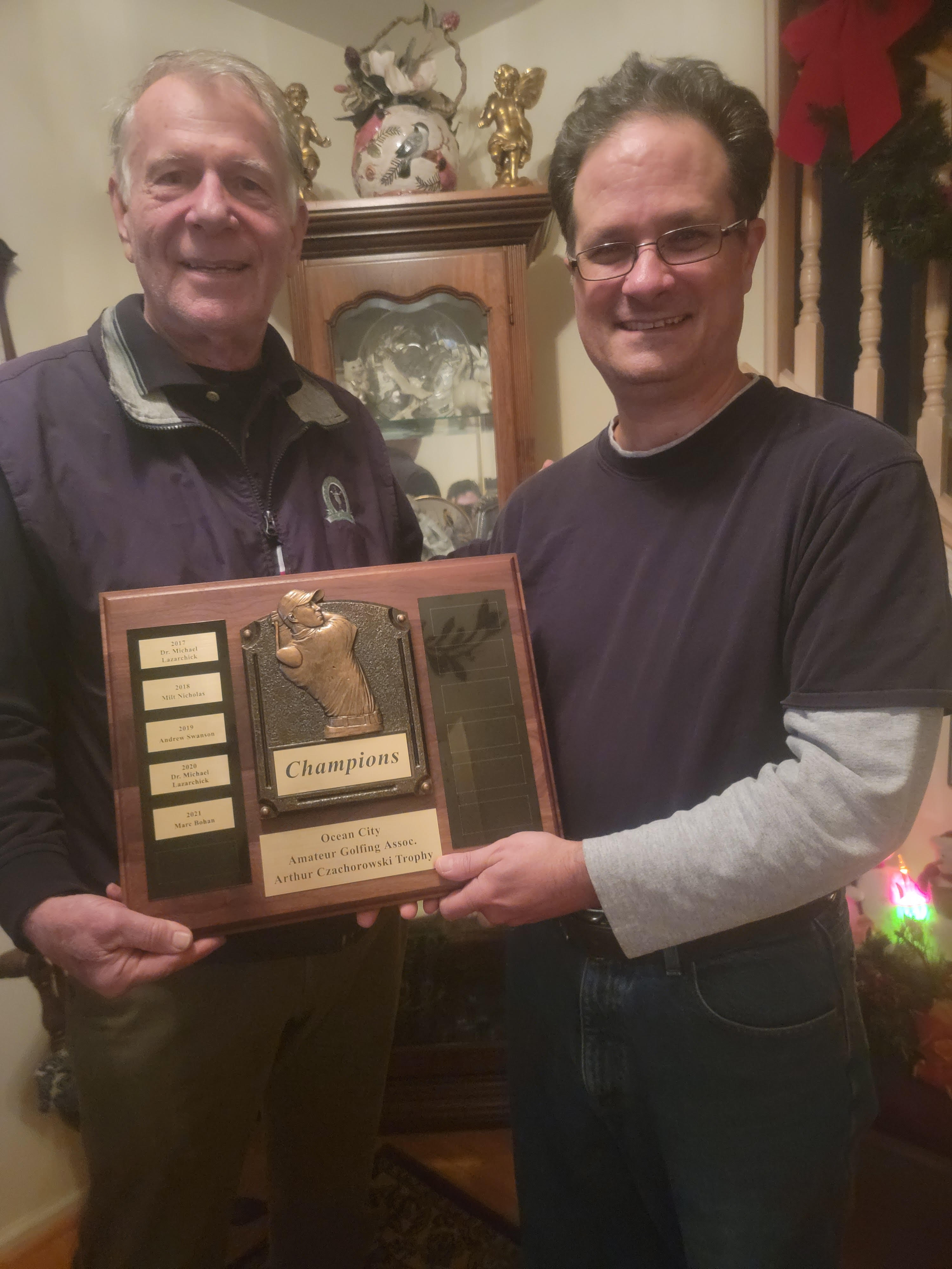 At the Polish American Tavern Stanislaus and Casimir were watching OCAGA Reports on TV. With one tournament left before the finals, the OCAGA statistician was saying John has made the Final Four if he plays Buena Vista! Larson is guaranteed 9 points for a last place finish giving him 114 for the season. Current 5th place Stephanie with a victory at Buena and three points for Closest to the Pin, can only reach 111. Lazarchick, Kissinger and O’Brien however, are all vulnerable if they do not finish well, and Steph does finish in the top 5. Marc Bohan will need the 3 Point Closest to the Pin and a first place finish, coupled with either Kissinger or OB finishing last and Stephanie also not making the top five. At the Café, Pierre announced eliciting rousing cheers, that Marc did win Buena in 2022 and did get CTP for 3 points. However, he cannot catch LZ. Jim Depiano also needs the CTP and a first place finish with the same scenario. All other players are mathematically eliminated, playing for SCATS. Stan and Cas were totally confused. However, they were ecstatic when they heard that 5 Time Champion, a living legend, Art Czachorowski will be playing in the tournament. Also, Bill Finger, aka The Hammer, a Star from the Pinelands Monday Evening League has accepted an invitation to play and may be a new addition to the OCAGA Tour.